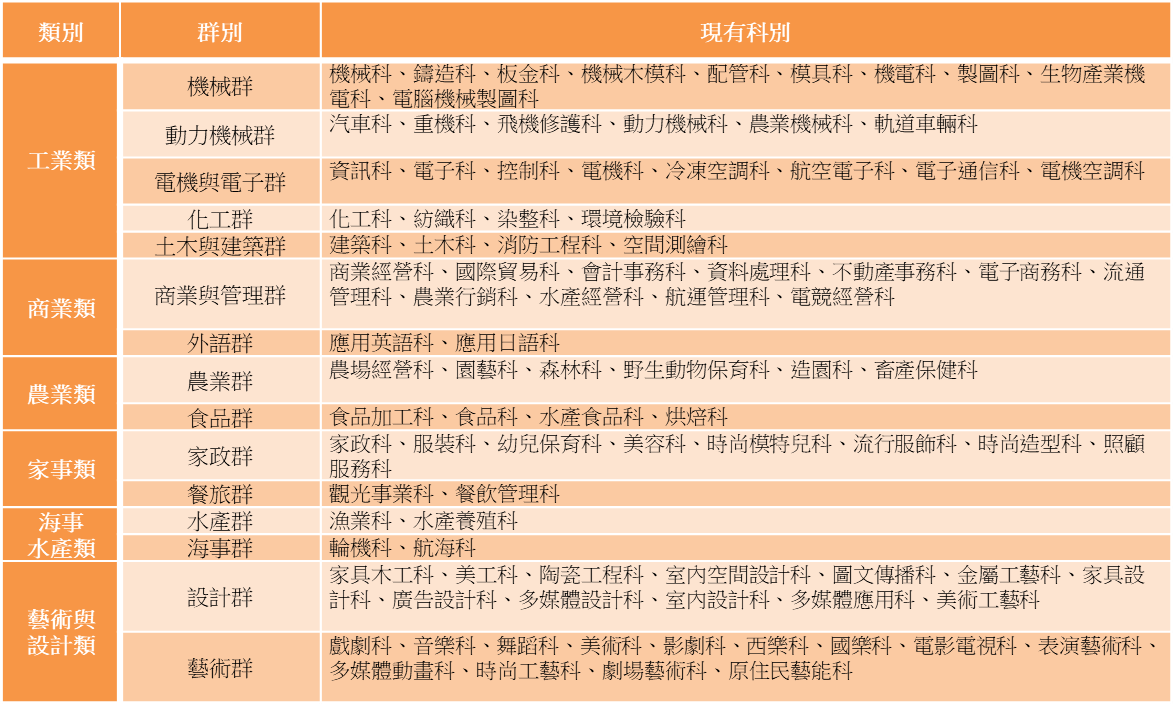 課綱群科歸屬表